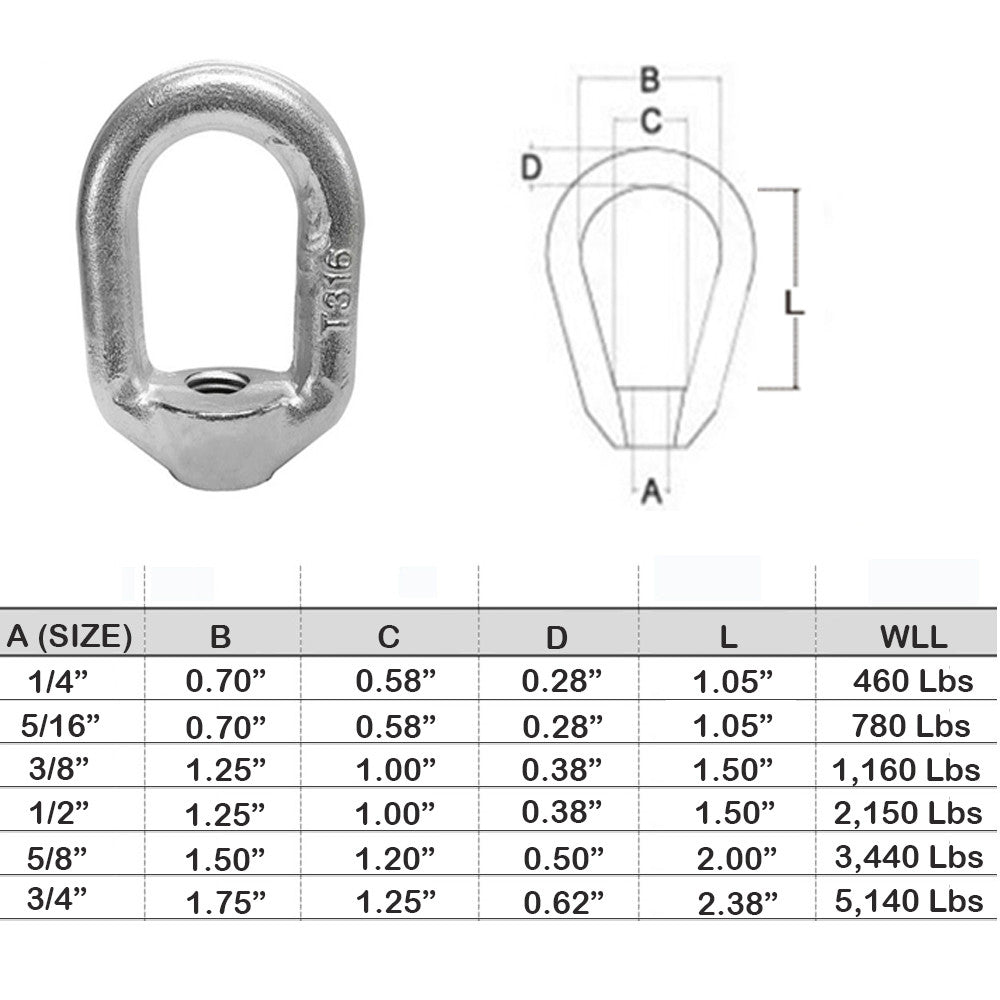 - Threaded Eye Nut Ring Oval Lifting Marine Forged Style Stainless Steel T316