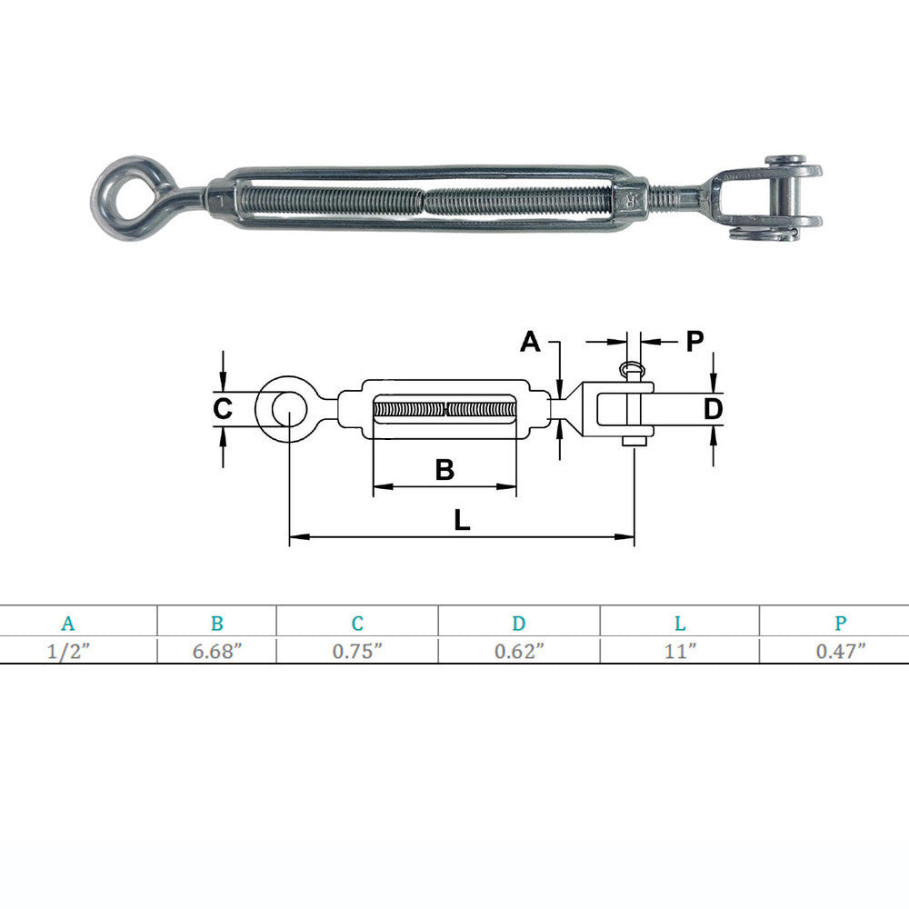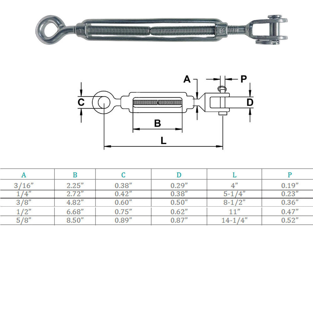 - Marine Grade Stainless Steel Jaw Eye Turnbuckle for Cable Rope