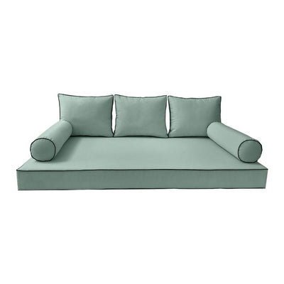 Model-3 6PC Contrast Pipe Outdoor Daybed Mattress Bolster Pillow Fitted Sheet Cover Only Twin Size AD106