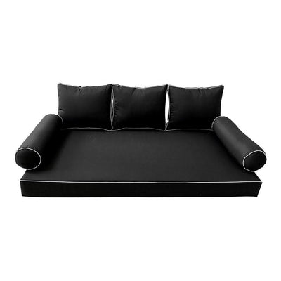 Model-3 6PC Contrast Pipe Outdoor Daybed Mattress Bolster Pillow Fitted Sheet Cover Only Full Size AD109