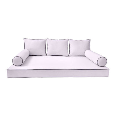 Model-3 6PC Contrast Pipe Outdoor Daybed Mattress Bolster Pillow Fitted Sheet Cover Only Full Size AD108
