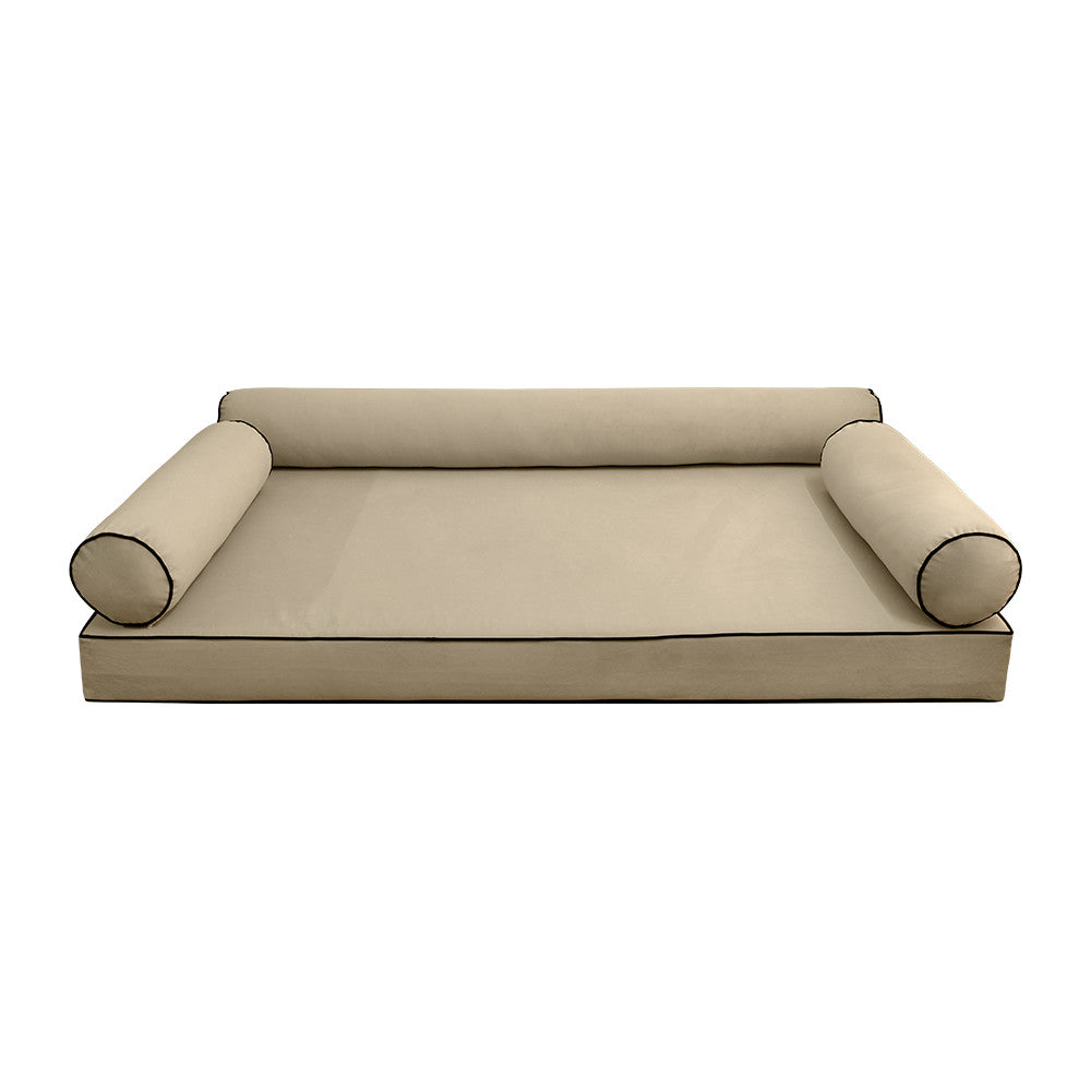 - COVER ONLY Model V6 Twin-XL Velvet Contrast Pipe Indoor Daybed Mattress Bolster Pillow - AD304