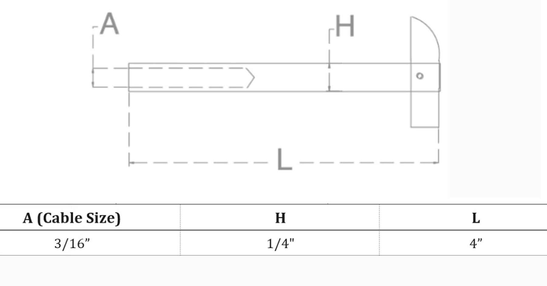 - Black Oxide 3/16" T316 Stainless Steel Drop Spin Stud For 3/16" Wire Rope Cable