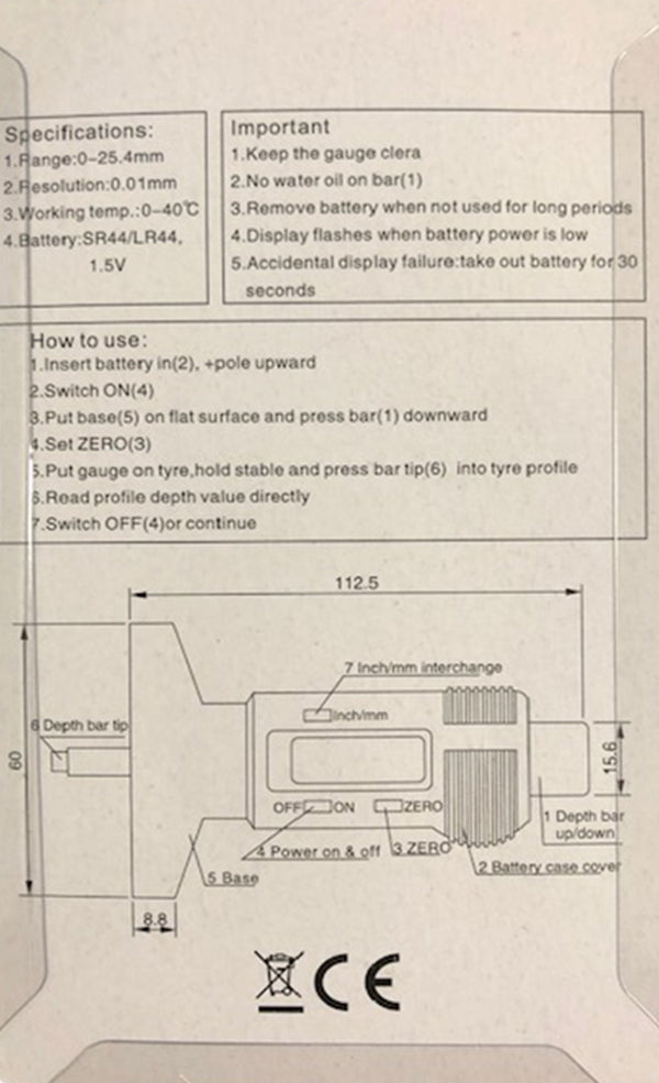 - 0-1"/ 0-25 mm, Digital Depth Gauge Gage,0.0005" Resolution, Tire Tread Depth Gauge