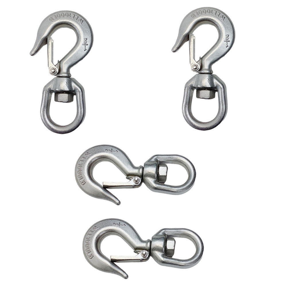 - 1/2" Drop Forged Swivel Hook Lifting Hook 1,000 LBS WLL Stainless Steel T316 4Pcs
