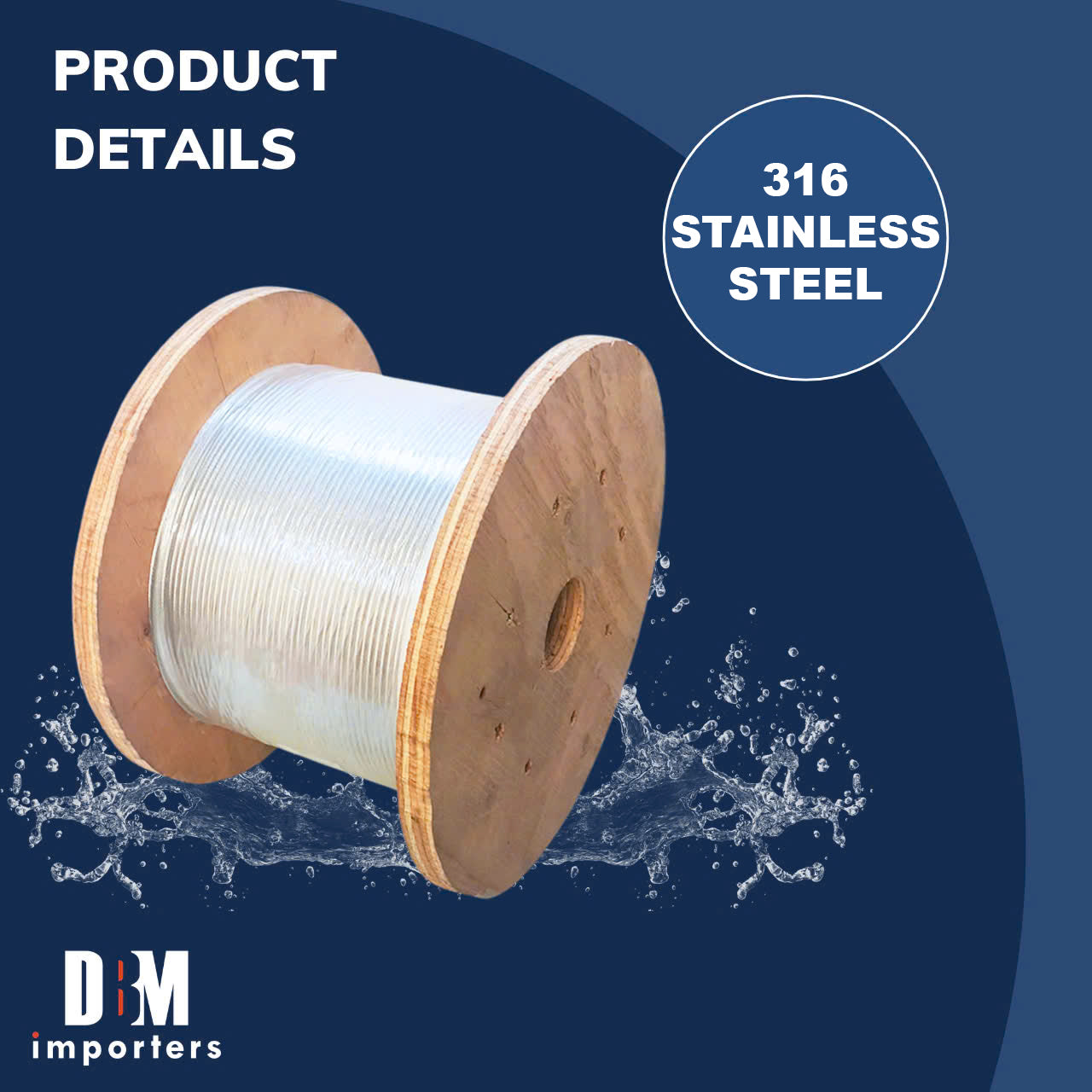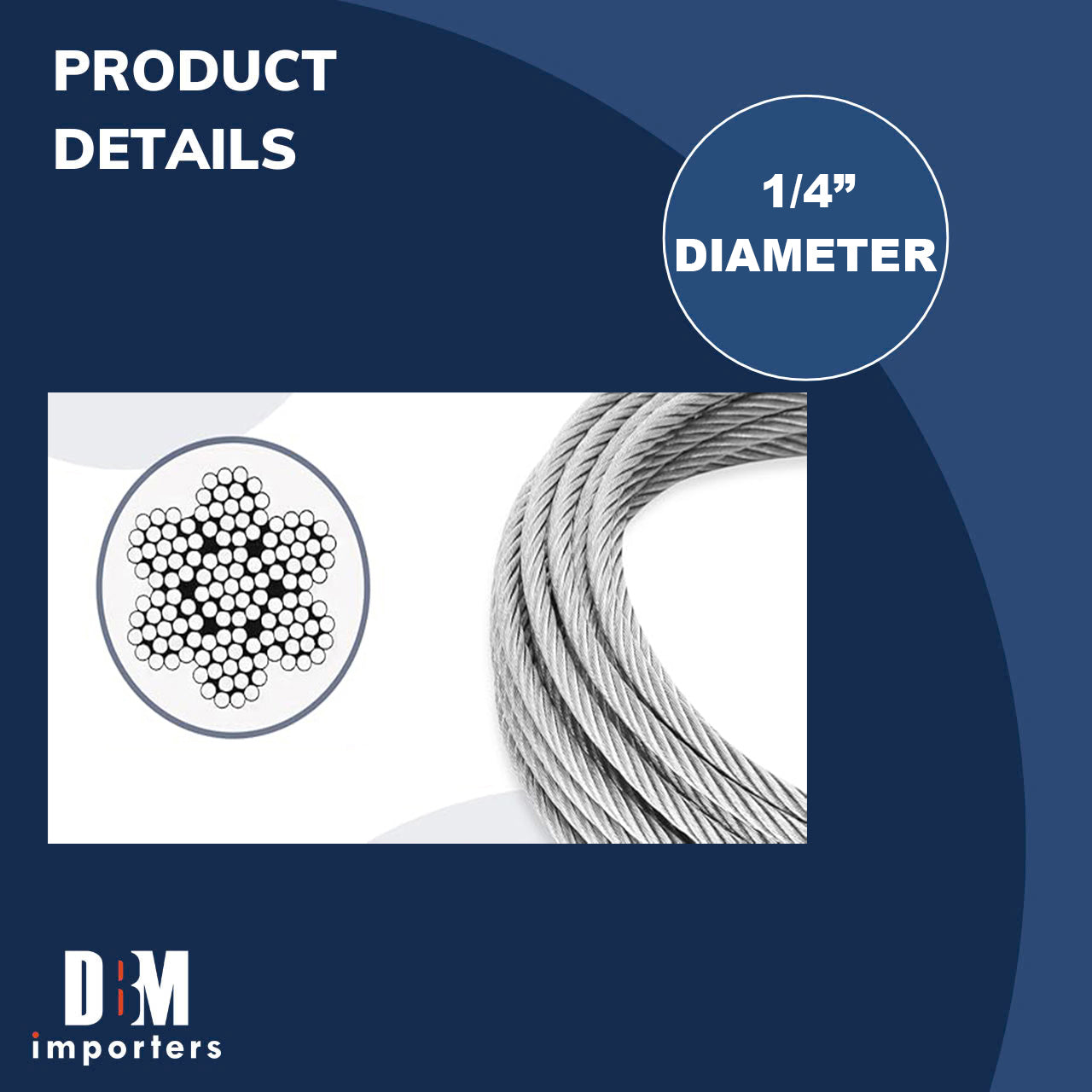 - 1/4" 7x19 STAINLESS STEEL 316 Cable Rail Railings Wire Rope 500 Feet Reel