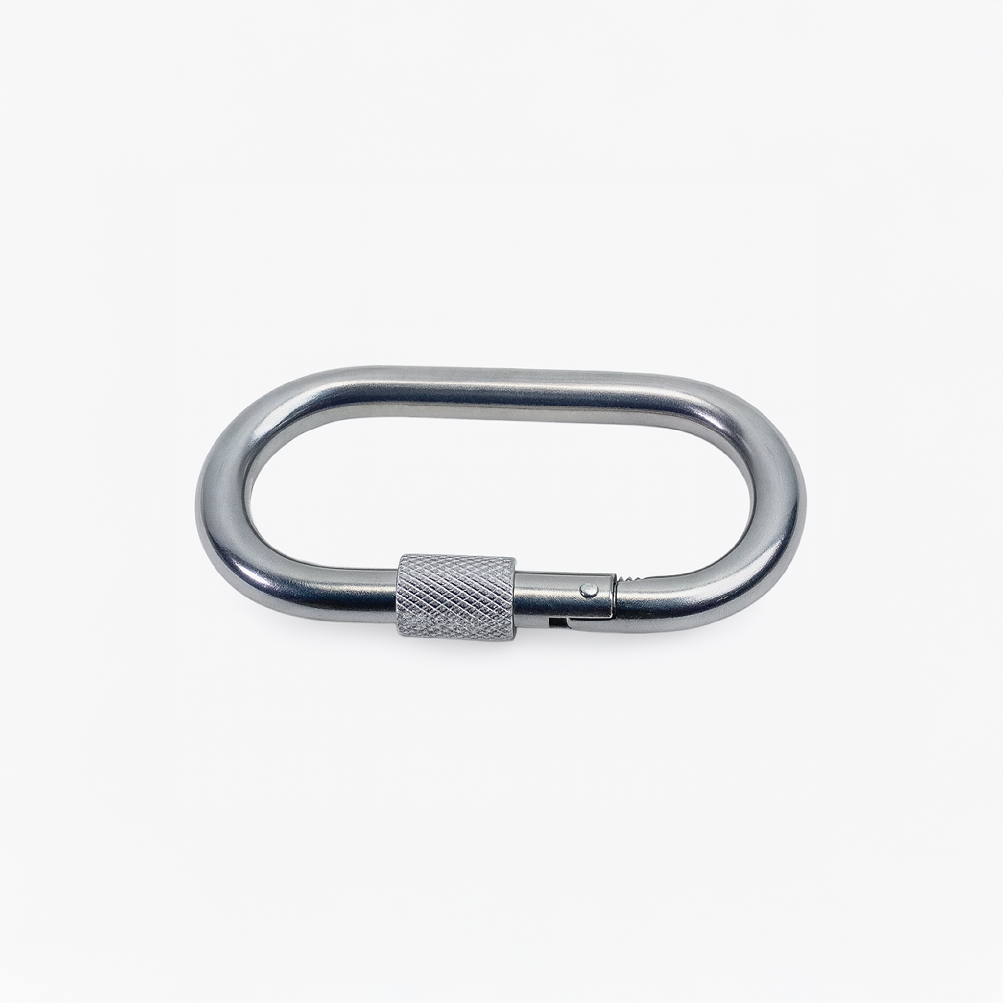 - 1/4" Carabiner Clip Spring Snap Hook Oval Shape W/ Lock Nut Stainless Steel T316