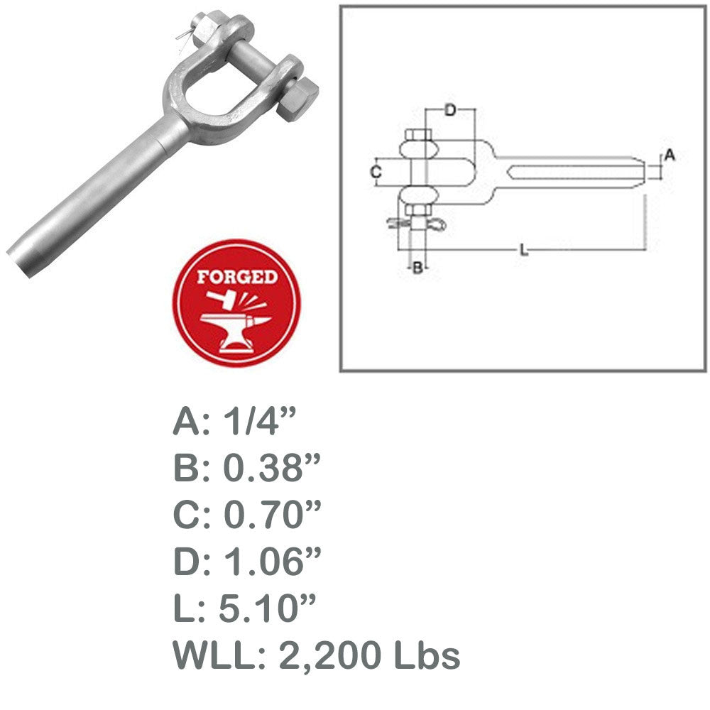 1/4" Drop Forged Open Swage Sockets Stainless Steel T316 2200 Lbs WLL
