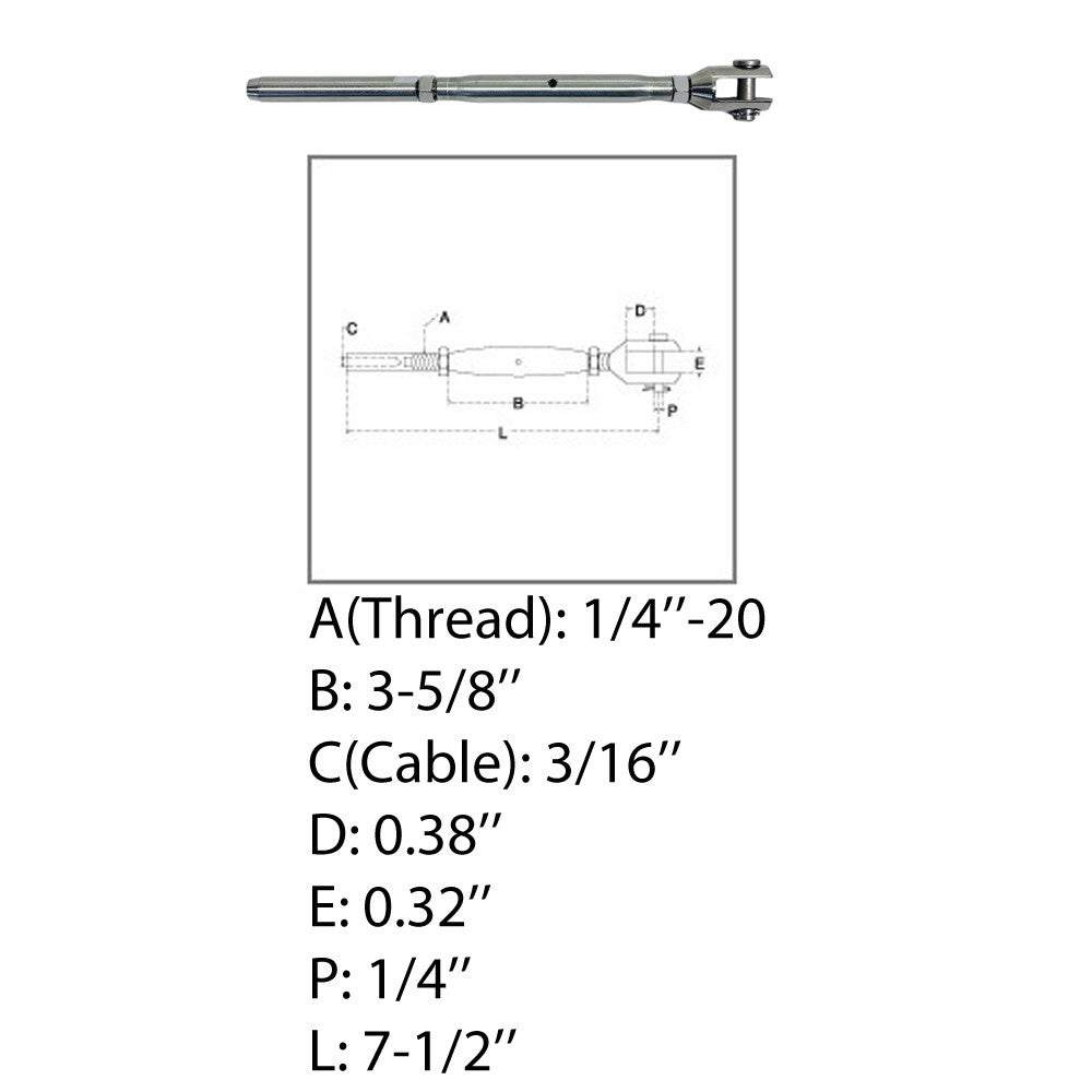 - Marine 1/4" Thread Fork & Hand Swage Stud Turnbuckle 3/16" Cable Stainless Steel 4 Pcs