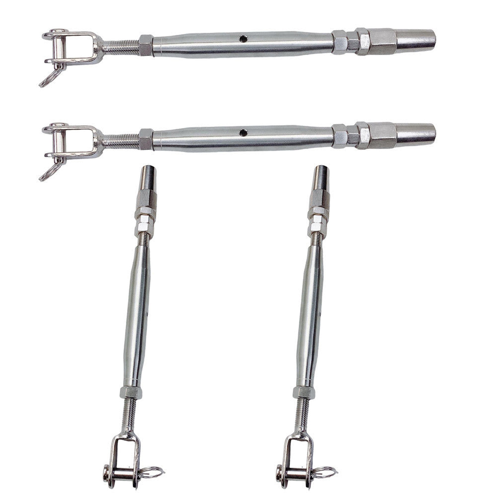 1/8" Cable Jaw Swageless Turnbuckle 1/4" Pipe Turnbuckle Stainless Steel 4 Pcs