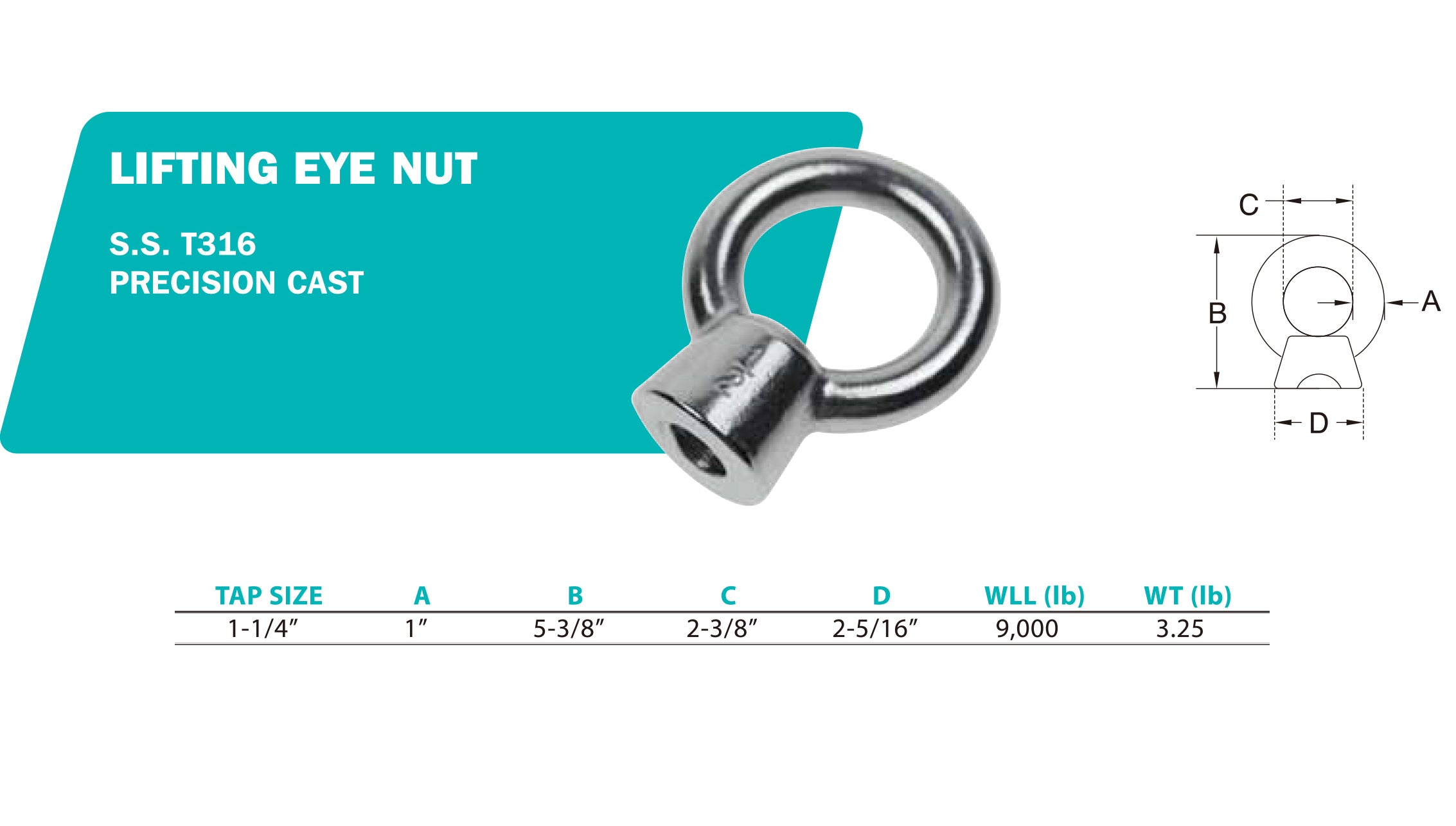 - 1-1/4" SS316 Lifting Eye Nut Boat Marine With 9,000 Lbs Capacity UNC Tap