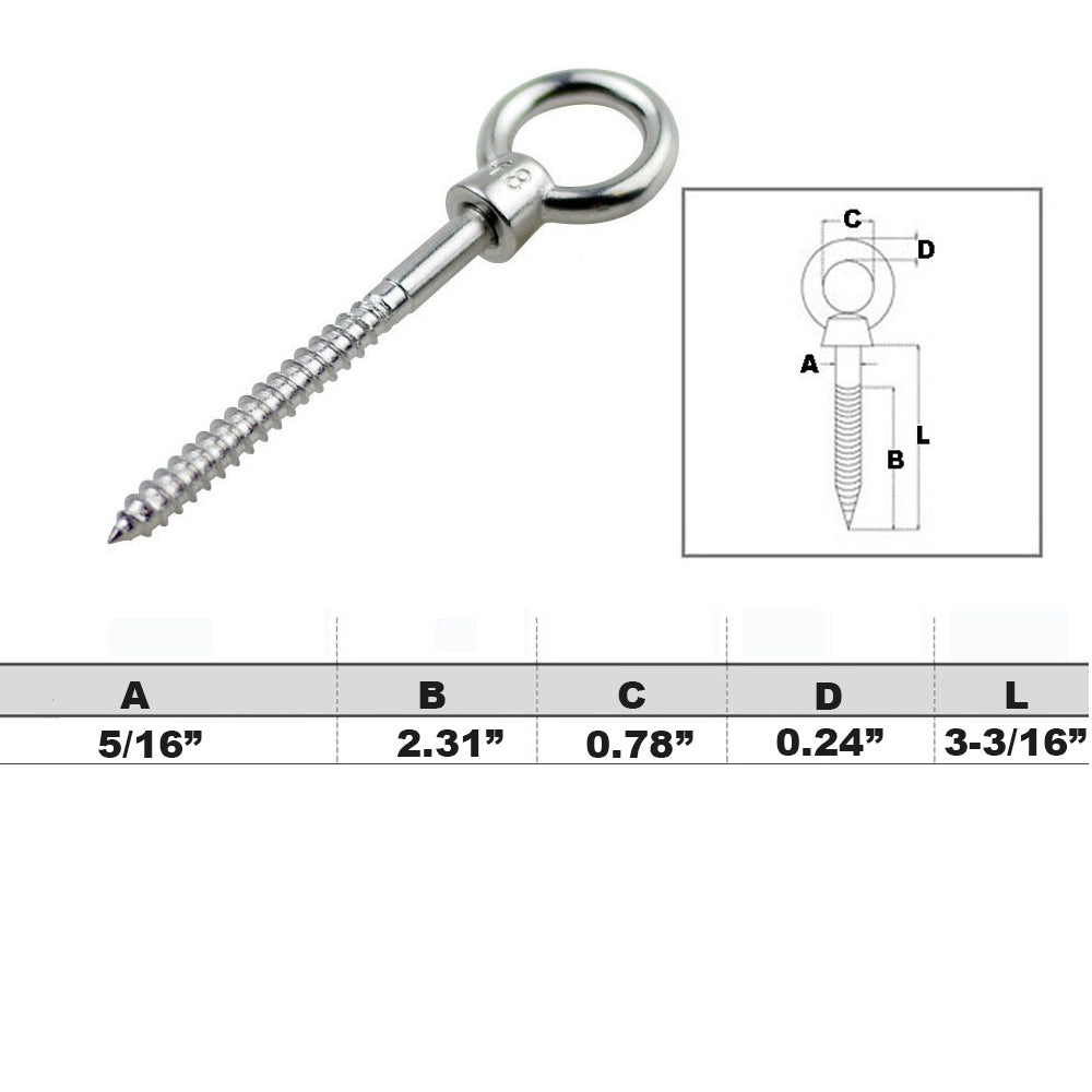 - 1 PC 5/16" x 3-3/16" Stainless Steel SS 316 Screw Lag Eye Bolt