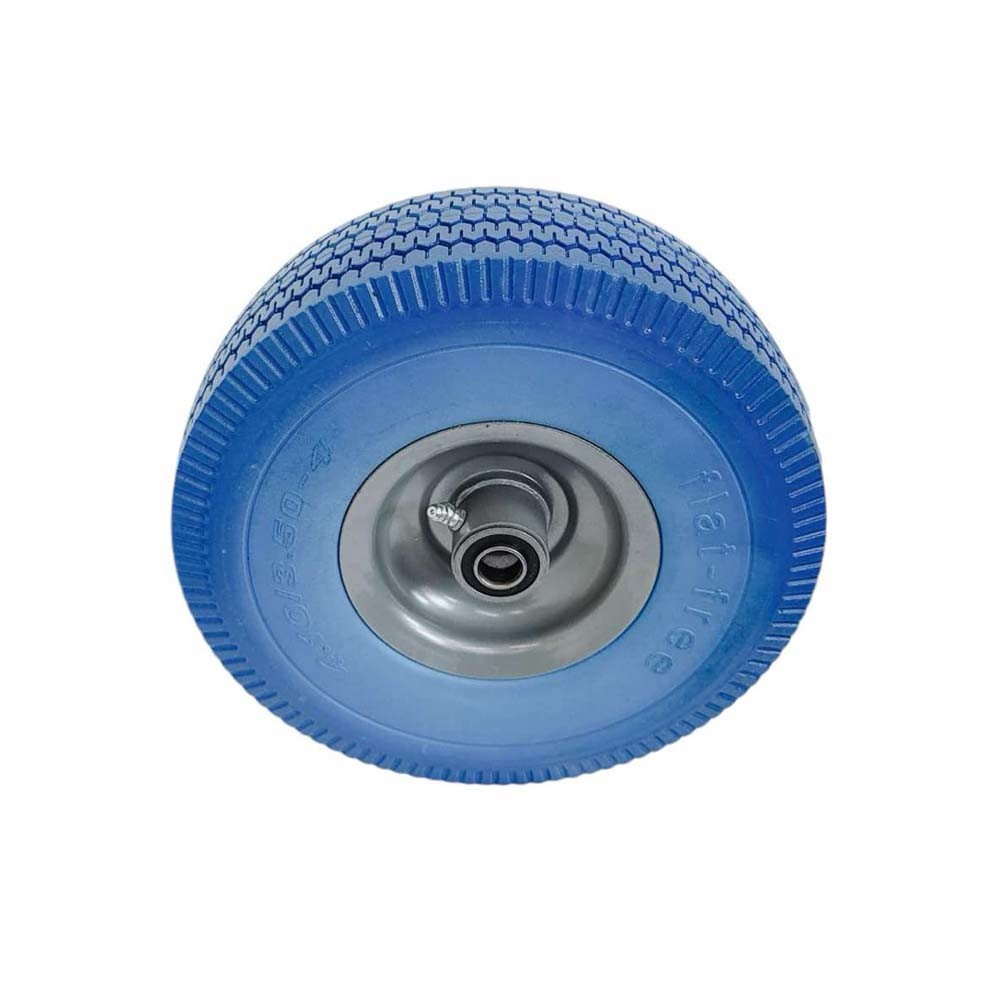 - 10" Blue Solid Rubber Flat Free Tubeless Hand Truck/Utility Tire Wheel, 4.10/3.50-4" Tire