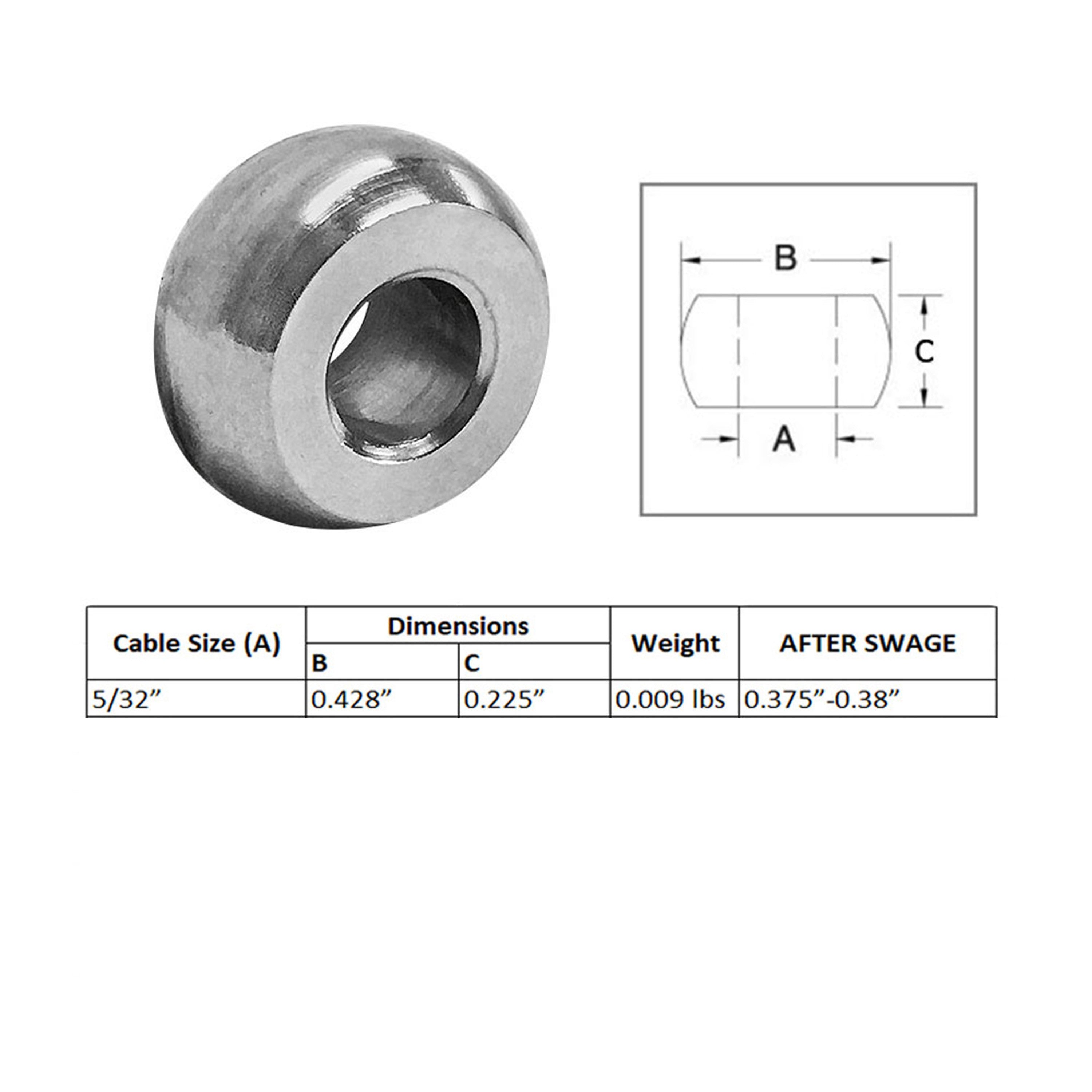 - 10 PC Plain Ball Swage End Fitting Stainless Steel 316 For Industrial Wire Rope Terminal