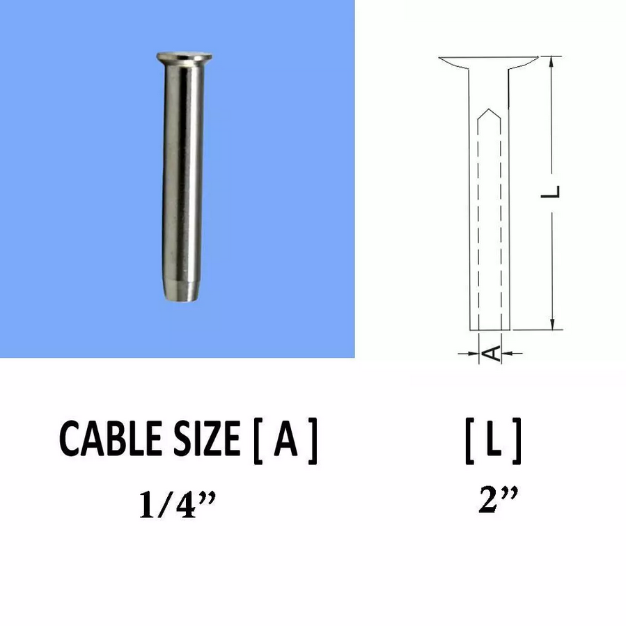 10 PC Stainless Steel Swage Stemball Hand-Crimp Metal Post 1/8", 1/4", 3/16" Cable Railing