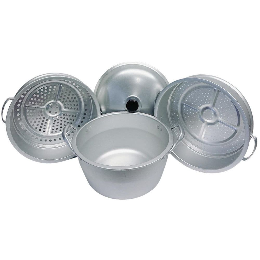 - Made of high quality and 100% food grade quality Aluminum which is strong and durable and each part is easy to clean. Base ensures even heat distribution and a rapid cook, saving you valuable time and energy in the kitchen.