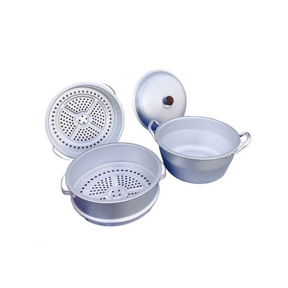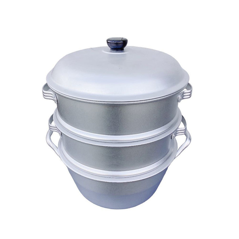 - 12" Food Steamer Aluminum 3-tier Steam Pot with Lid for Vegetables,Seafood,Soups