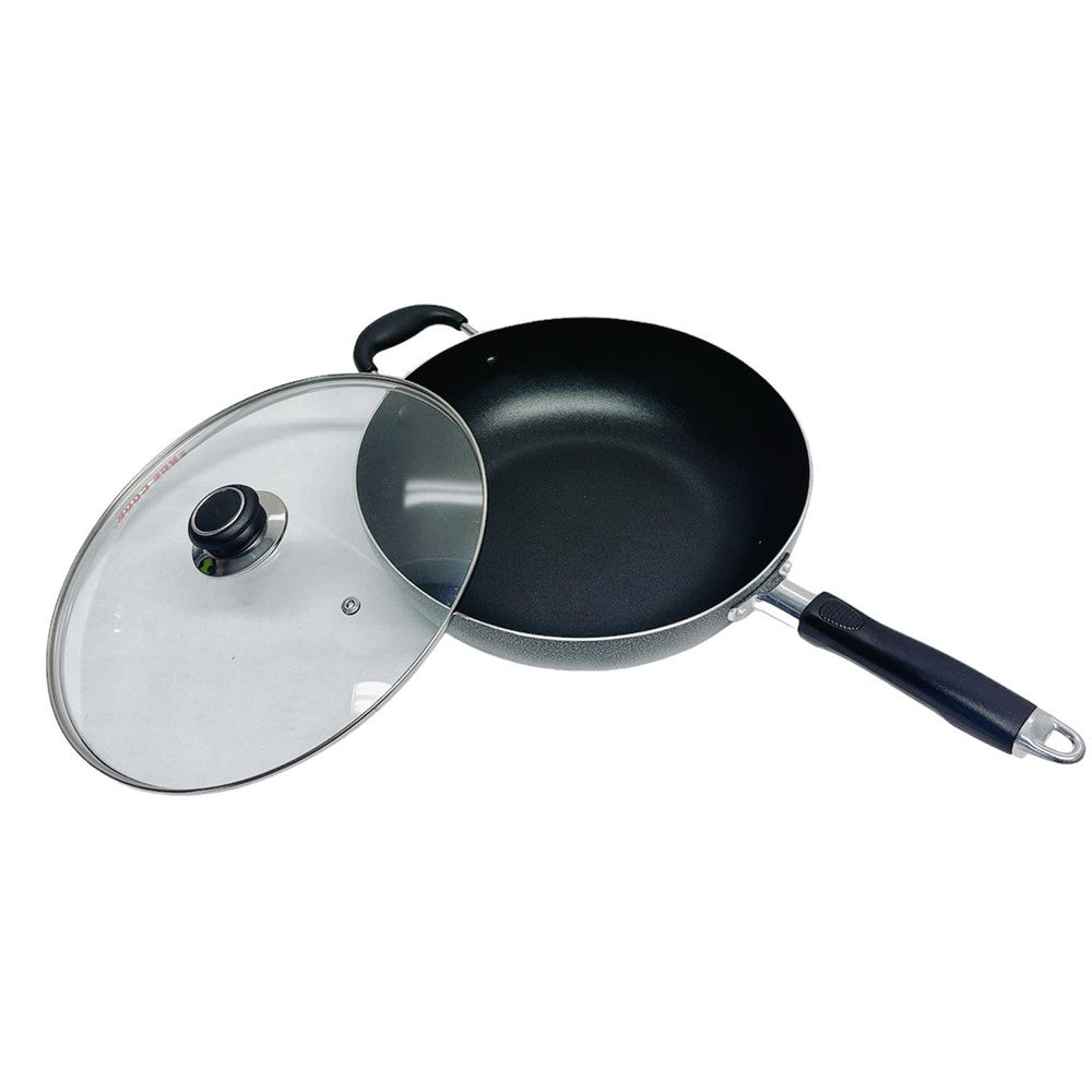 - 12" Nonstick Wok Pan With Lid Deep Frying Pan with Handle,Skillet,Dishwasher Safe