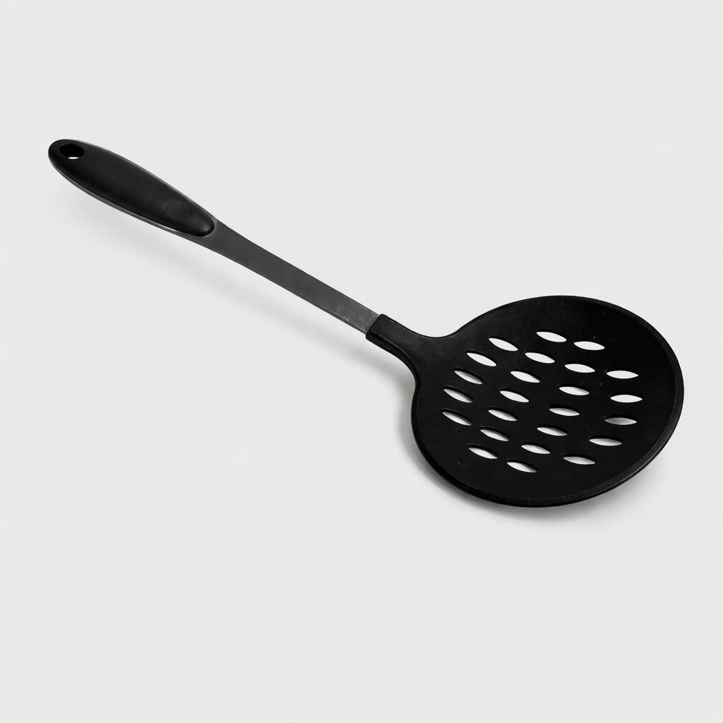 - 14" Nylon Slotted Skimmer Spoon, Heat Resistant Scoop Strainer with Stainless Steel Handle, Nonstick Safe Cooking Utensil