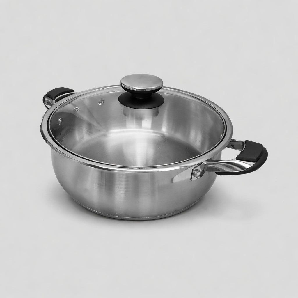 8 Quart Stainless Steel Low Pot 12" Cooking Pot, Low Stock Pot for Stews, Soups, Braising & One-Pot Meals