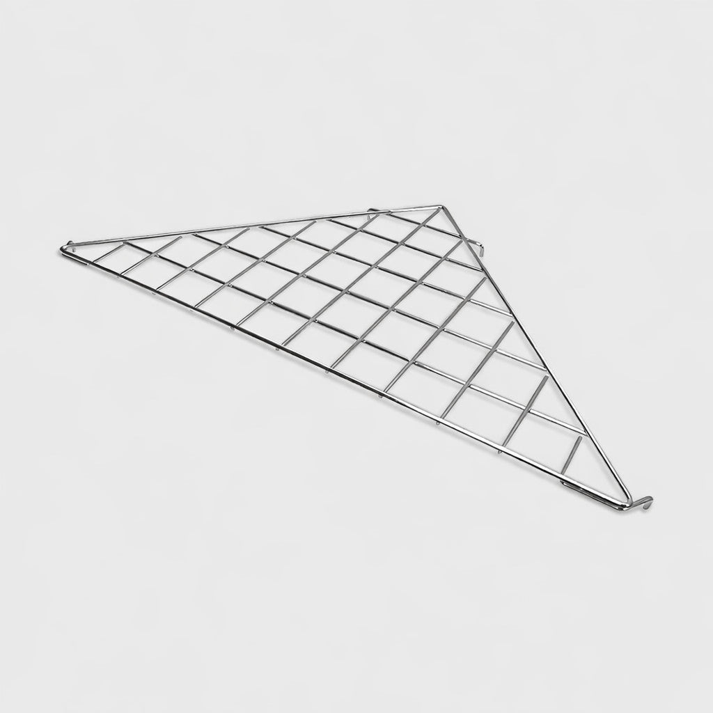 2 Pcs Chrome Corner Triangle Wire Grid Shelf 24” x 24” x 32” Slat Grid Panel Shelf for Retail Store & Display Systems