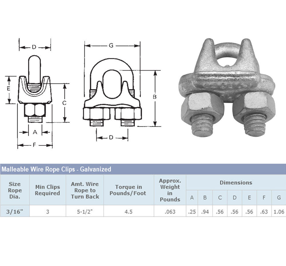 - 2 Pc Marine Wire Rope Cable Clips Cable Clamp 3/16'' Drop Forged Galvanized
