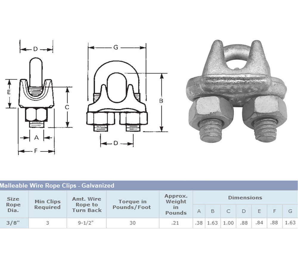 2 Pcs Marine Drop Forged Galvanized Steel 3/8" Wire Rope Clip Cable Clamp
