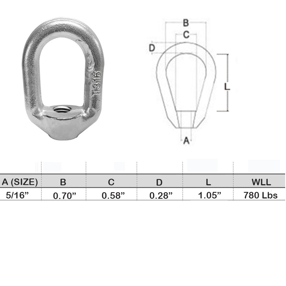 • 20 PC 5/16" Threaded Eye Nut Ring Oval Lifting Marine Forged Style SS T316 WLL 780 LBS Cap