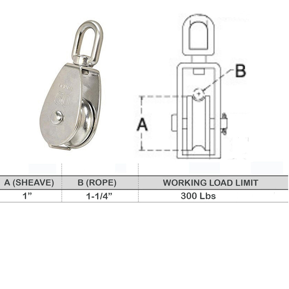 - 20 Pcs 1" Single Pulley Block Wheel Swivel Lifting, 316 Stainless Steel