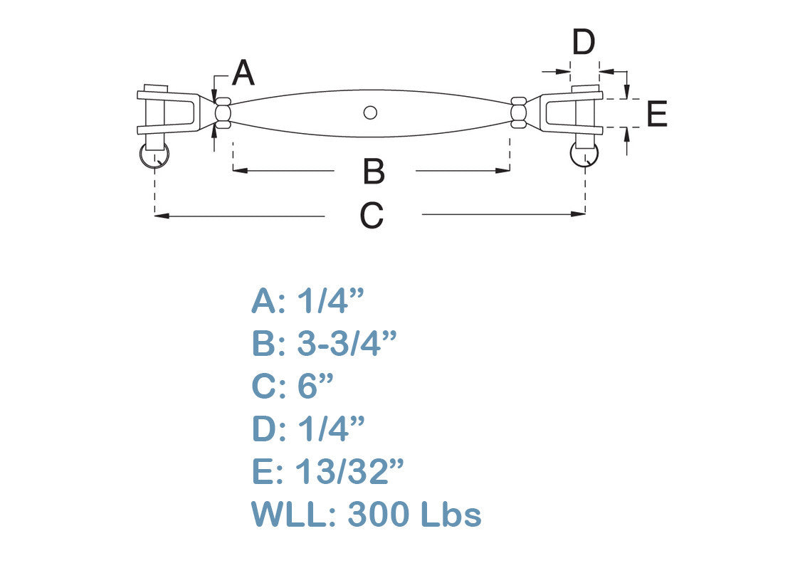 - 20 Pcs Marine Stainless Steel 1/4" Closed Body Turnbuckle JAW JAW Rigging 300 Lbs Cap