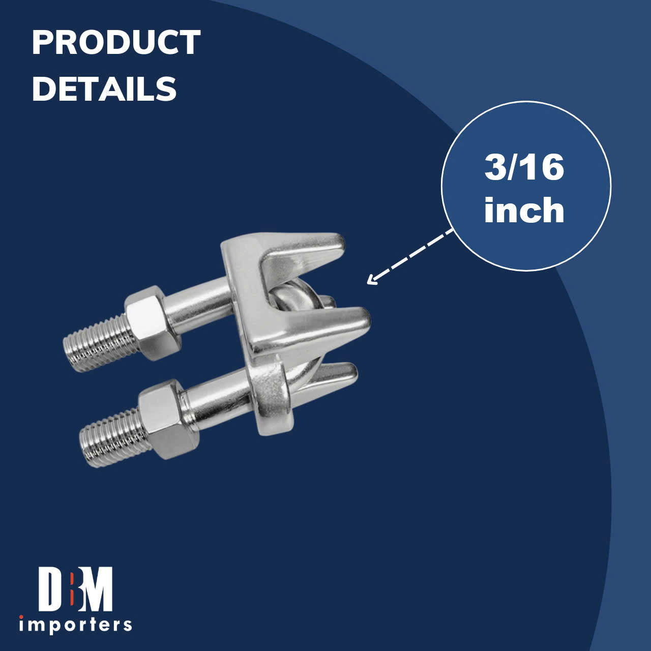 3/16" Stainless Steel 316 Heavy Duty Marine Wire Rope Clips Cable Clamp Rig Boat