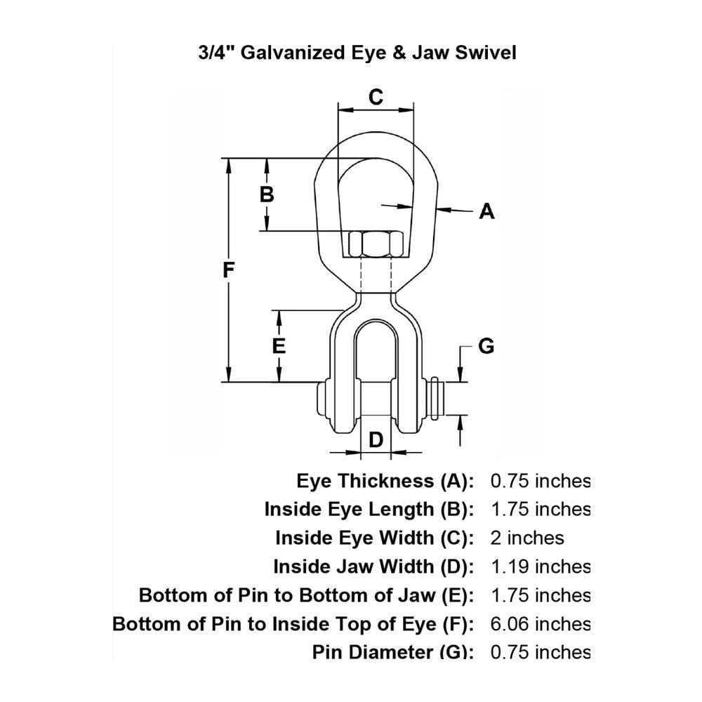 - 3/4" Jaw & Eye Swivel for Marine Boats – Hot Dipped Galvanized Mooring Connector, 7,200 lbs WLL, Jaw & Eye Swivel