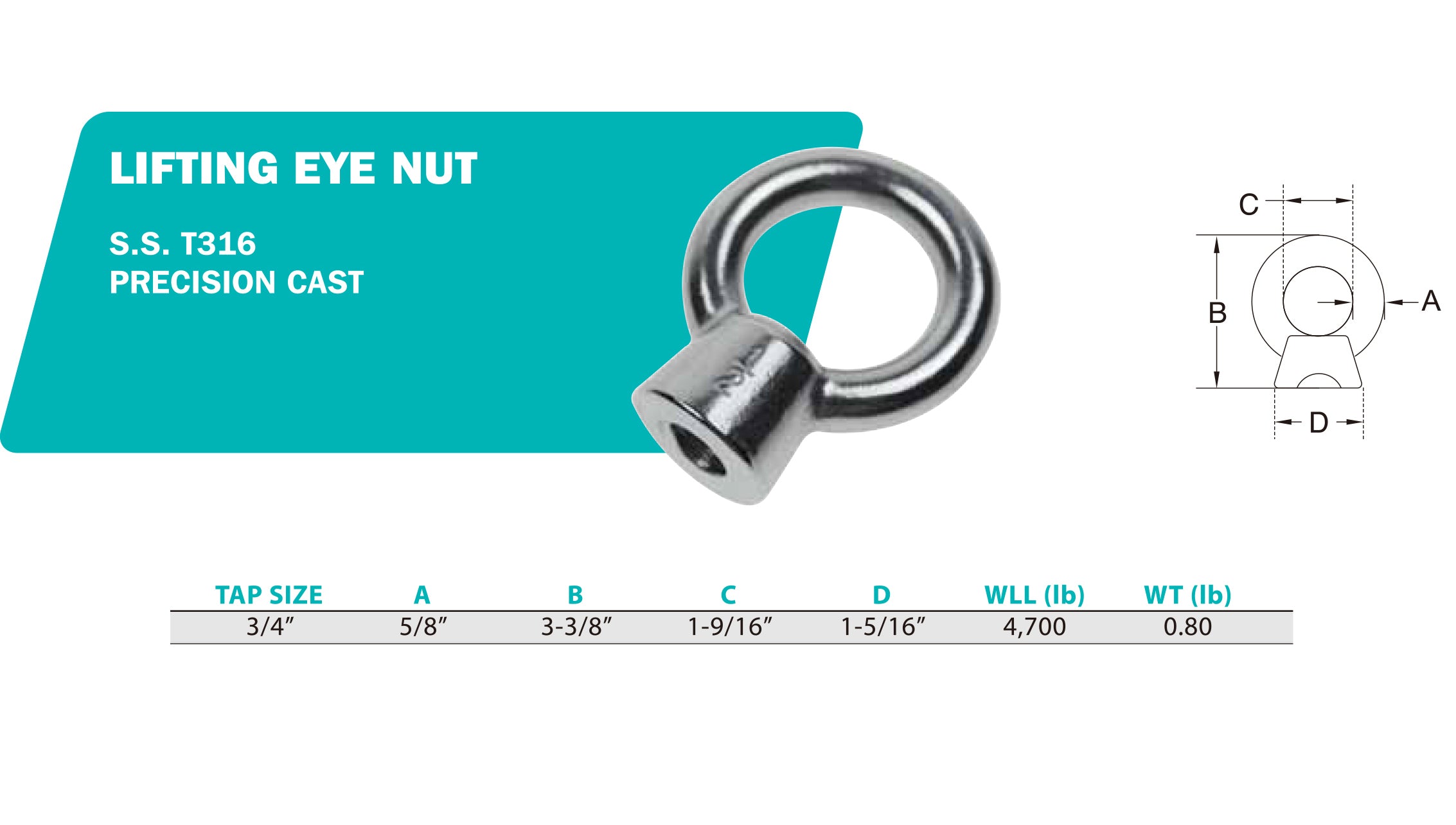 - 3/4" SS316 Lifting Eye Nut Boat Marine With 4,700 Lbs Capacity UNC Tap