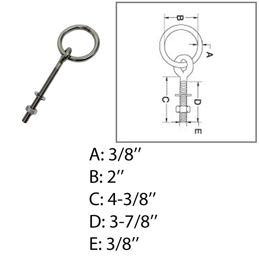 - 3/8" Marine Ring Eye Bolt 2" Ring Diameter Shoulder Bolt Stainless Steel T304 4Pc