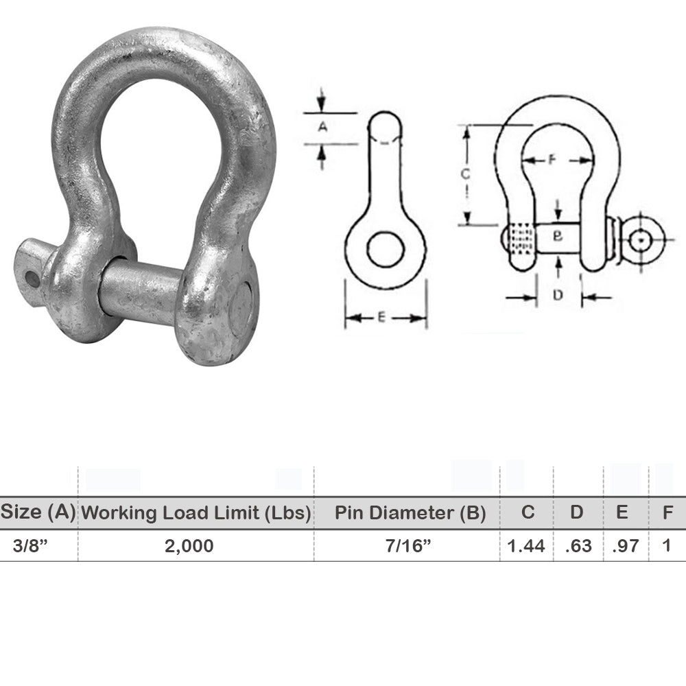 • 3/8'' Screw Pin Anchor D Ring Rigging Bow Shackle Galvanized Steel Drop Forged For Marine Boat WLL 2000 Lbs