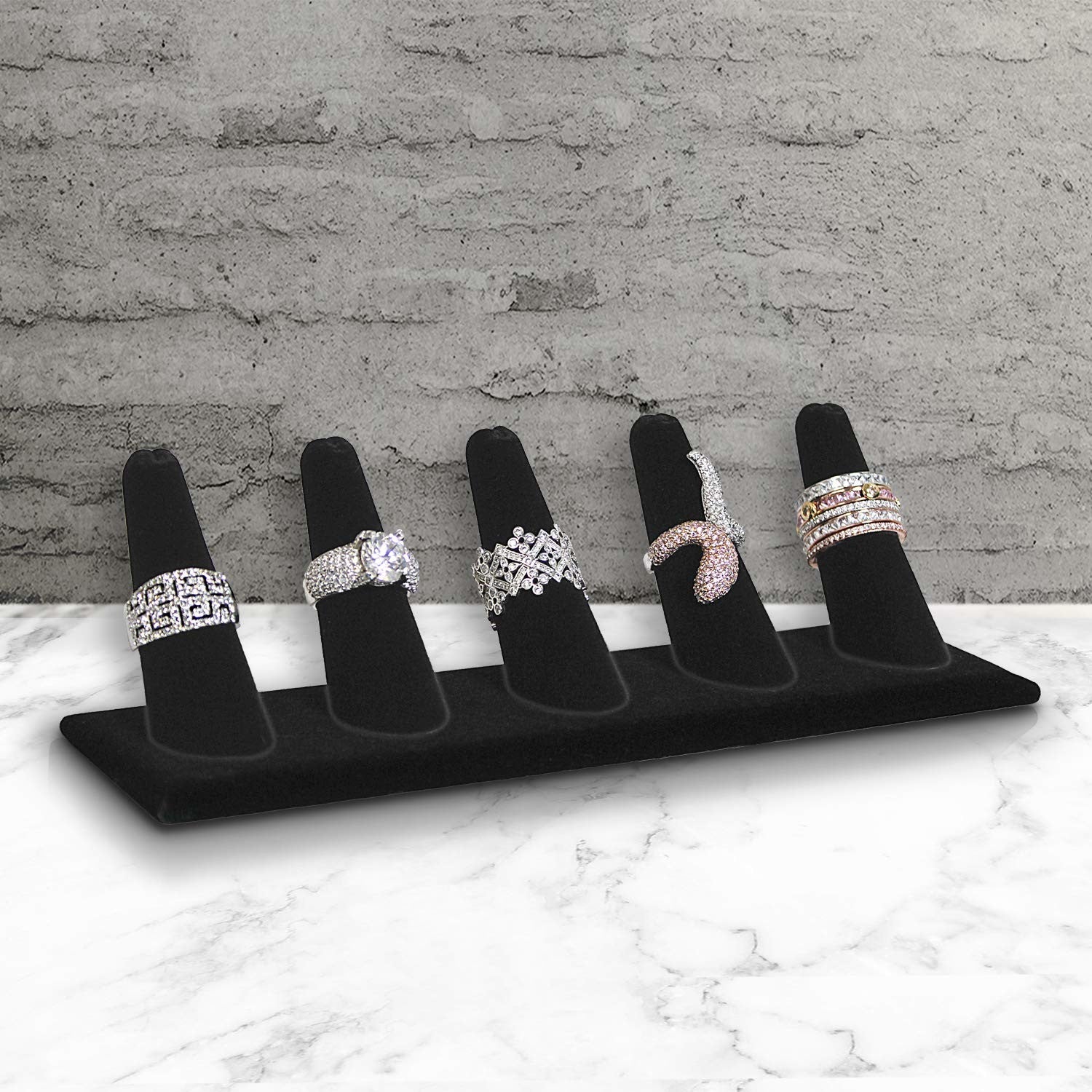 - 3 Pcs 8" Black Velvet 5-Slot Ring Display Stand 5 Finger Jewelry Showcase Holder for Retail or Personal Use