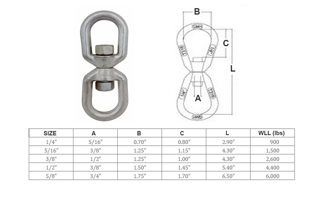 - 316 Stainless Steel Drop Forged Mil-Spec Eye Eye Swivel Marine Boat