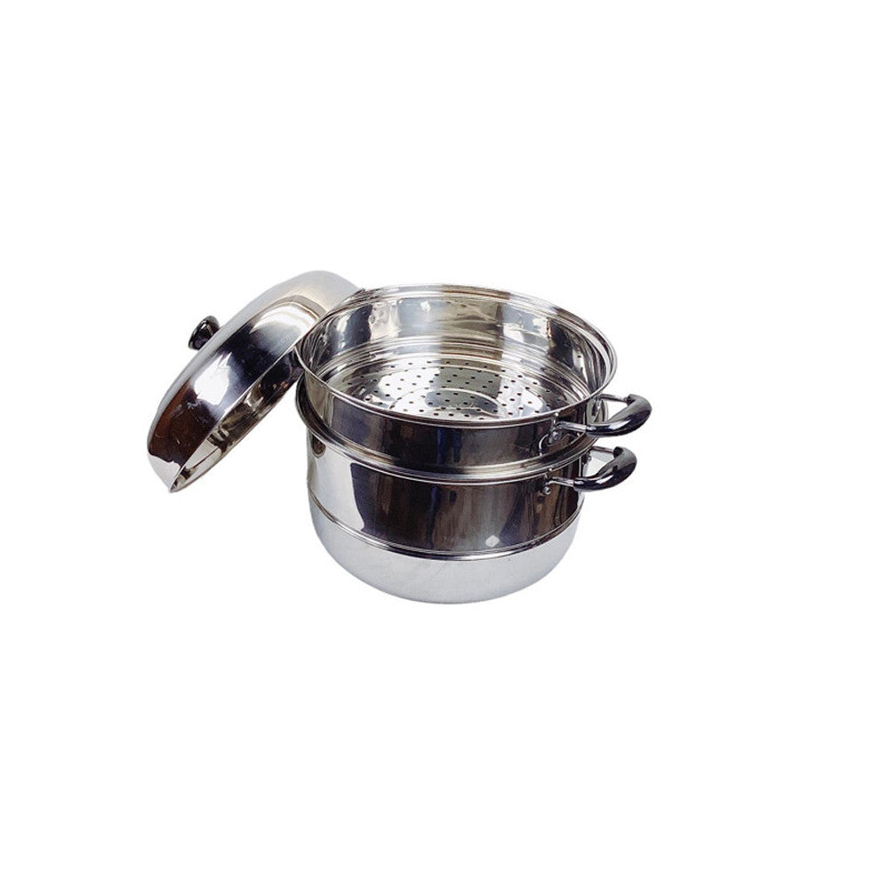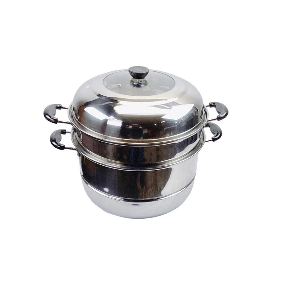 • Steamer Pot Stainless Steel 2 Tier - 32cm Steamer Pot w/Glass Lid Food Veg Cooker Pot