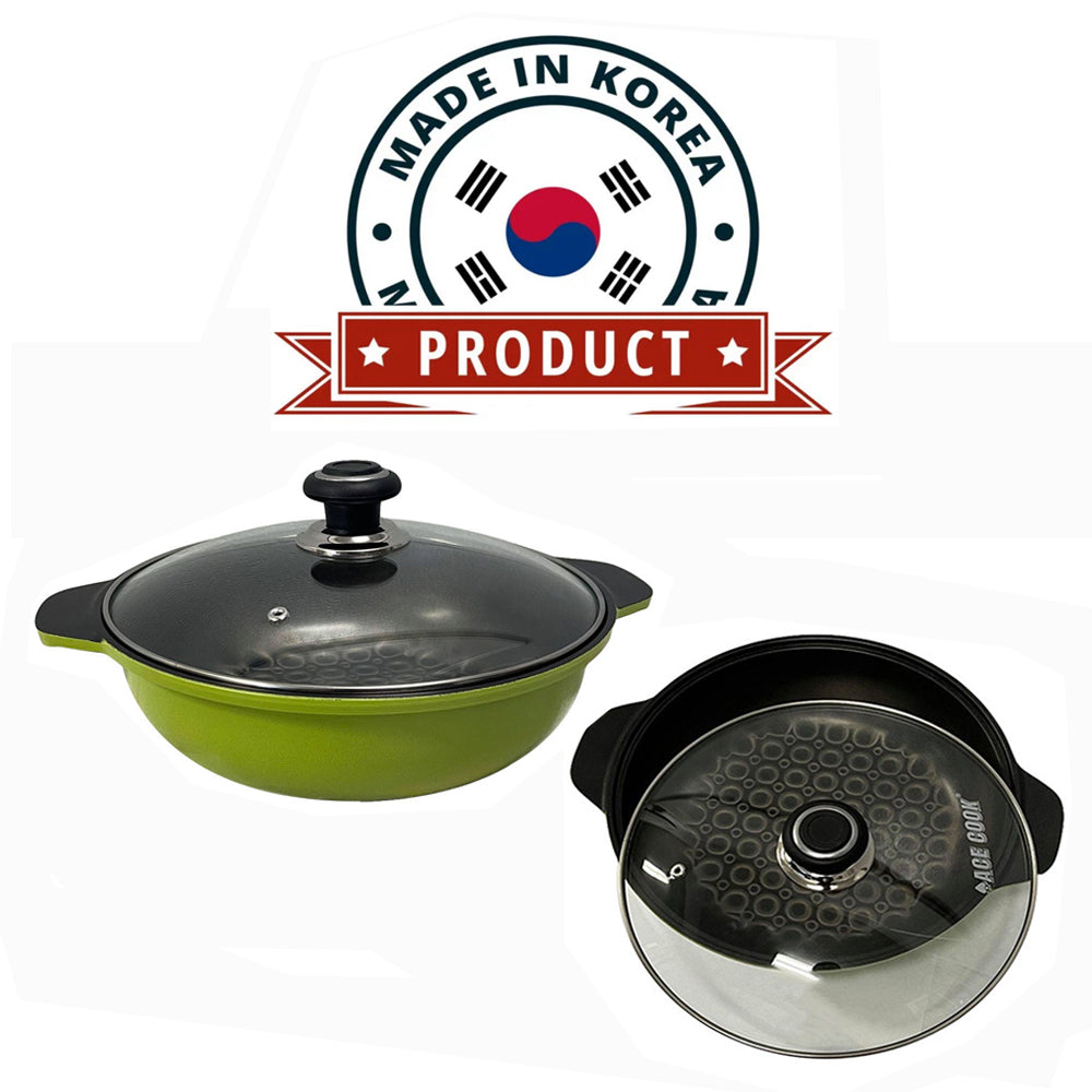 - 3D Green Bubble Diamond Coating Nonstick Wok 11"(28 cm) Diameter Cooking Pan MADE IN KOREA