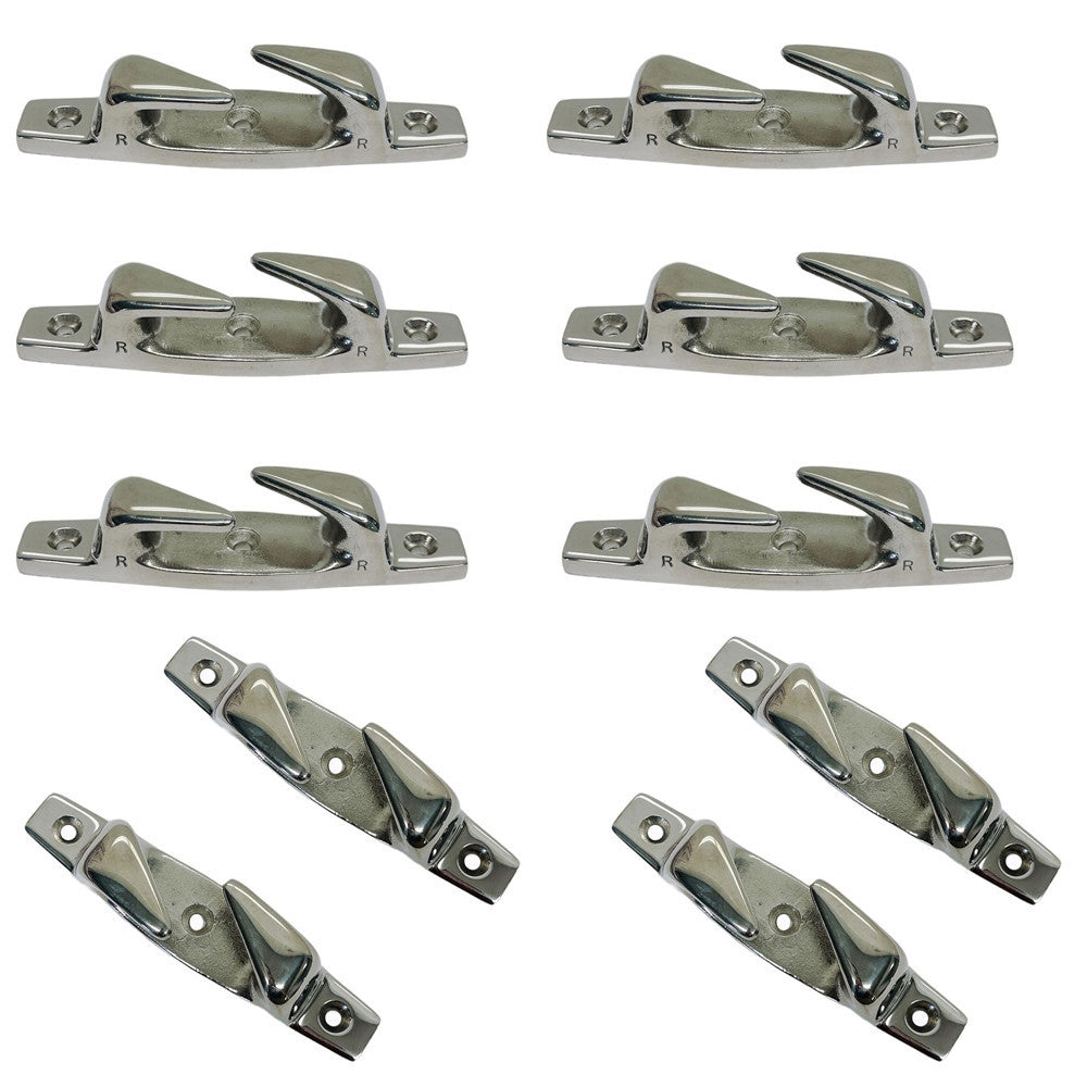 - 4-1/2" Stainless Steel Boat Angled Right Deck Dock Mooring Rope Cleat Chock 10 Pcs