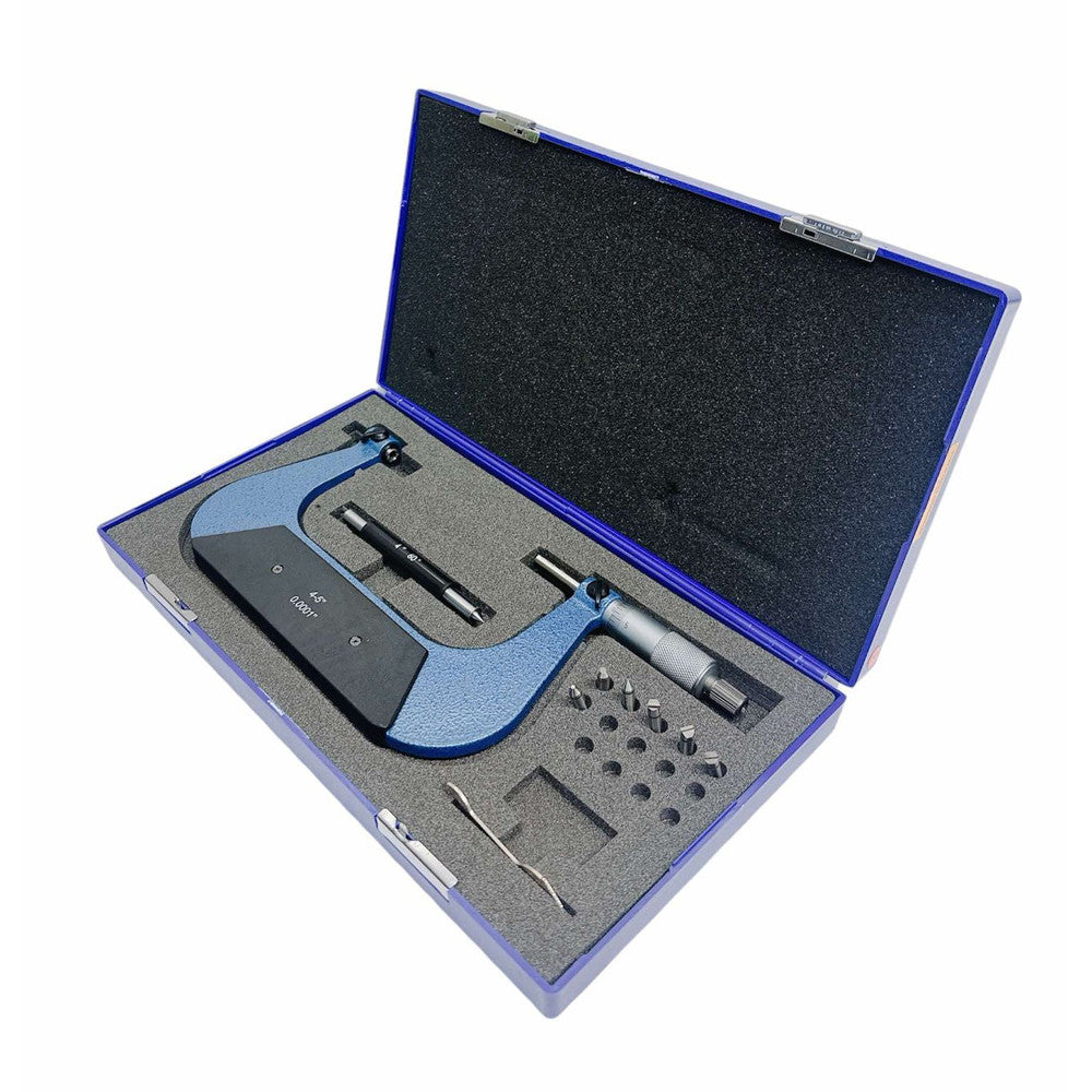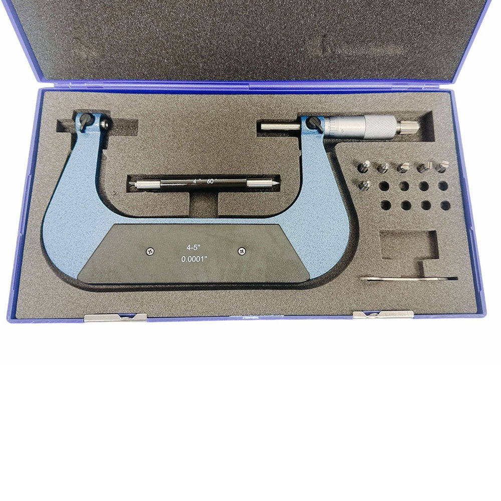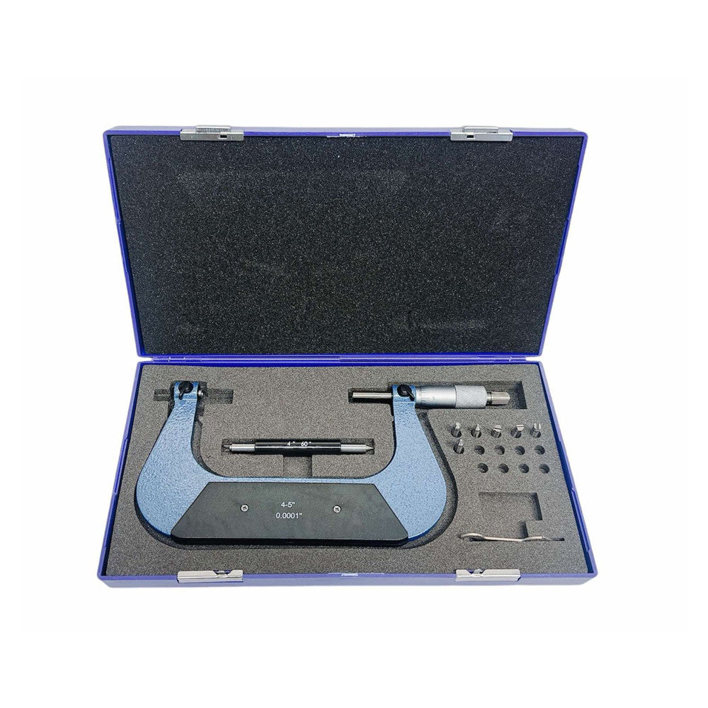 4-5" Range Screw Thread Micrometer Kit With 4 Anvils 0.0001'' Grad .00020"/0.005mm Accuracy