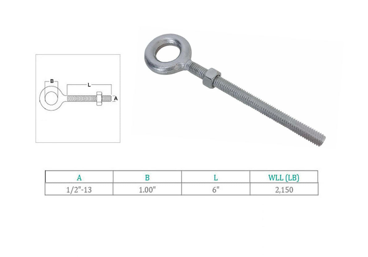 - 4 PCS Marine 1/2" x 6" Drop Forged Plain Eye Bolt 2,150 Lbs WLL Stainless Steel T316