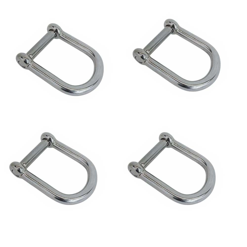 4PC 15/32" Screw Pin Wide D Shackle No Snag Pin 2850 Lb WLL Stainless Steel T316