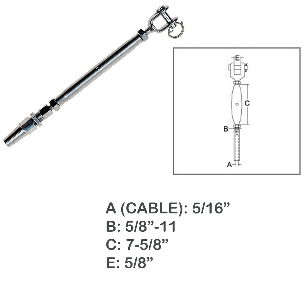 - 5/16" Cable Jaw Swageless Turnbuckle 5/8" Pipe Turnbuckle Stainless Steel T316