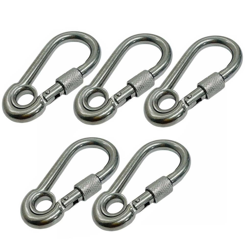 5/16" Marine Stainless Steel Carabiner Spring Snap Hook w/ Eyelet & Screw 5 PC