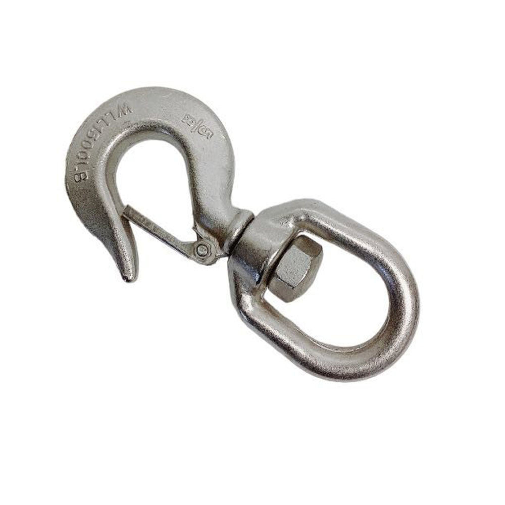 - 5/8" Drop Forged Swivel Hook Lifting Hook 1,500 LBS WLL Stainless Steel T316 4Pcs