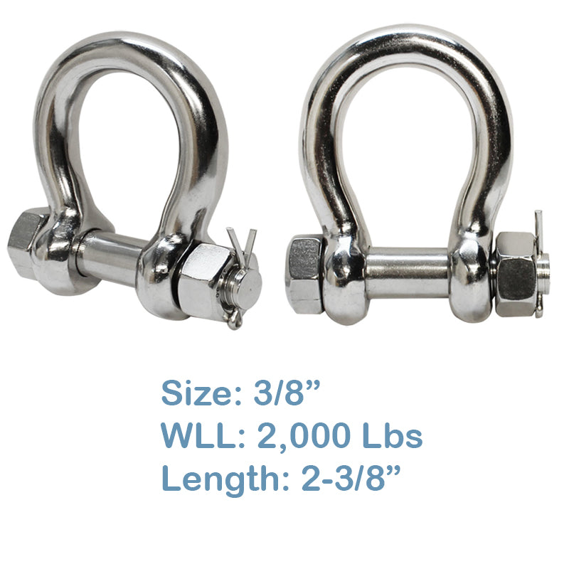 • 5 PC 3/8" Bolt Pin Anchor Shackle Stainless Steel SS 316 Marine Rigging Paracord
