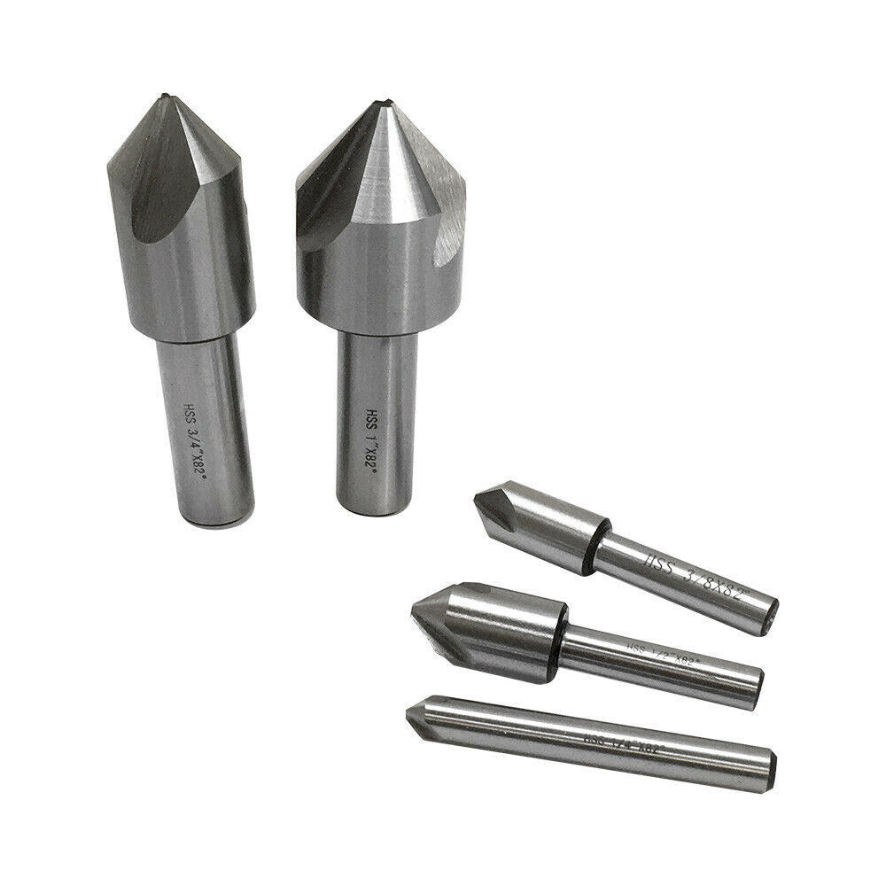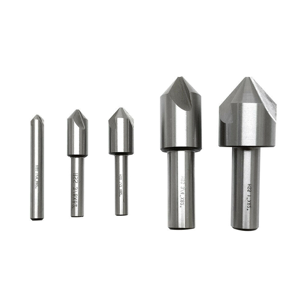 5 PC 3 Flute HSS Countersink 1/4", 3/8", 1/2", 3/4" & 1" Set