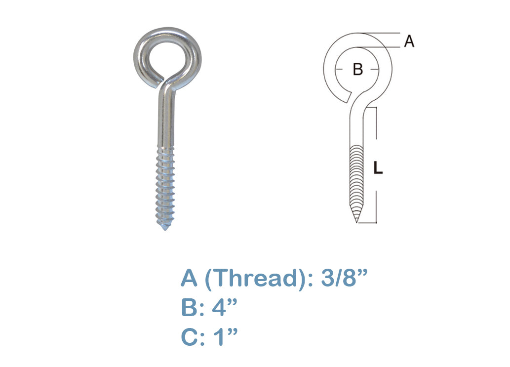 - 316 Stainless Steel Lag Eye Bolt