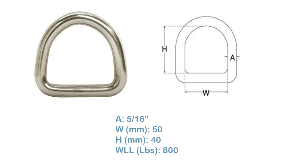 5 PC 40MM Welded D Ring Marine Boat Rigging 316 Stainless SteeL 800 Lb Cap Lifting Hook Pulley Hoist